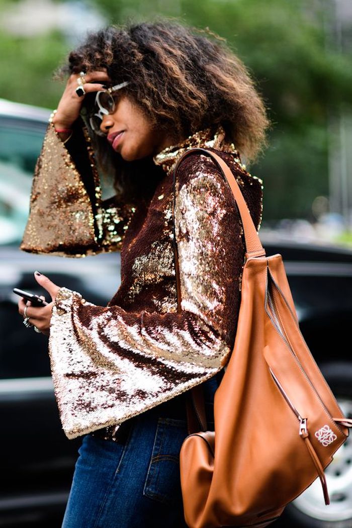 Les paillettes sont votre meilleur ami quand il s’agit d’une soirée à thème rétro, les lunettes de soleil rondes sont