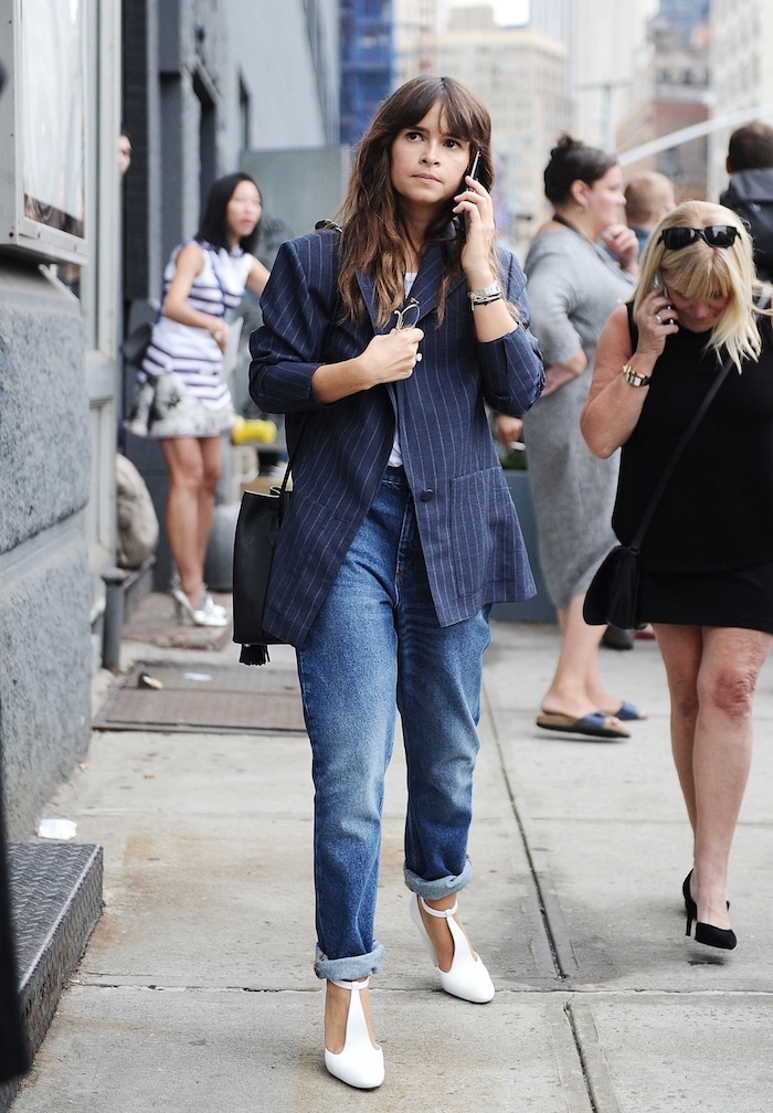 Rihanna aime le look des années 80 — grande combinaison moderne en jean deux pièces
