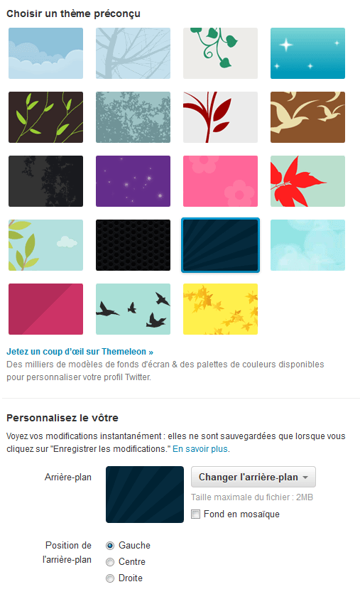 - Thème visuel : Personnalisez l’ambiance de votre profil en modifiant l’arrière-plan, choisissez parmi les thèmes ou téléchargez votre propre image.