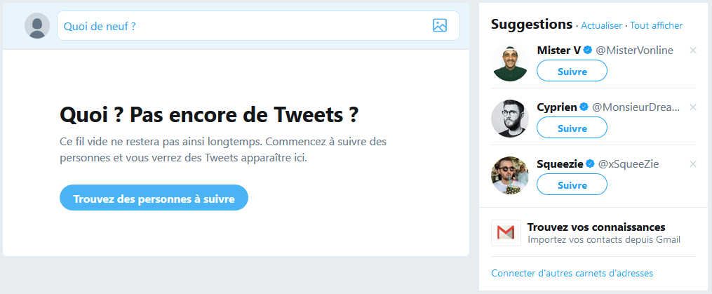 Si besoin, Twitter propose aussi d’importer automatiquement vos contacts Gmail ou Outlook pour recroiser certaines connaissances d’un simple clic.
