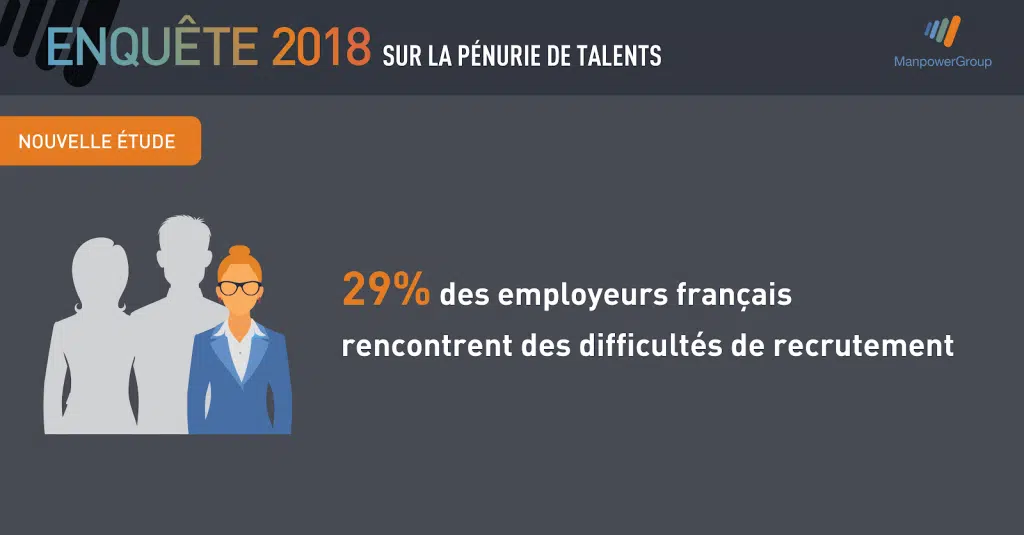 Selon une étude réalisée par ManpowerGroup en 2017, 29% des employeurs français ont de la difficulté à recruter de nouveaux talents.