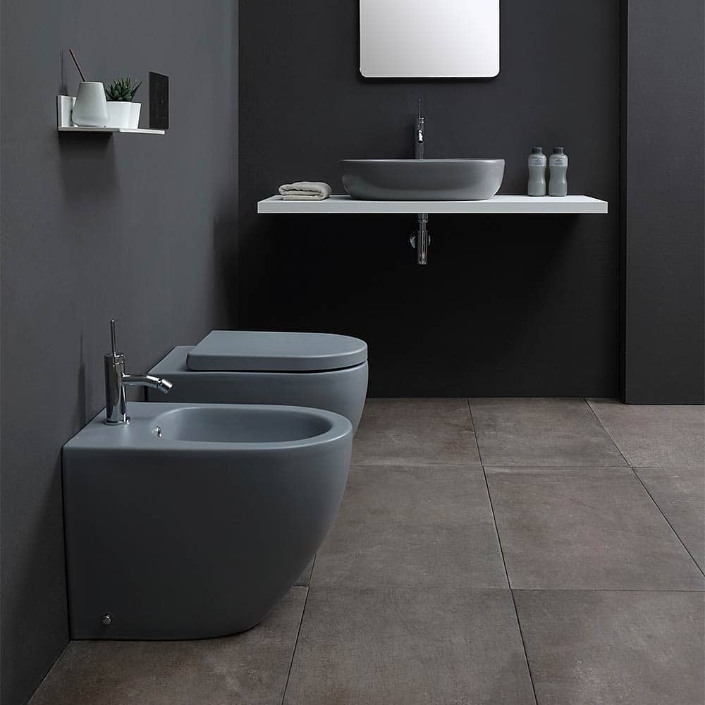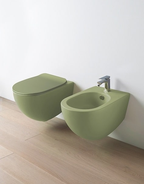 artéceram Le blanc mat se marie très bien avec un parquet. Pour réveiller l’ensemble, un WC coloré fait toute la différence. Les modèles mats s’imposent cette année, parfaits pour ceux qui veulent oser la tendance jusque dans les moindres détails.