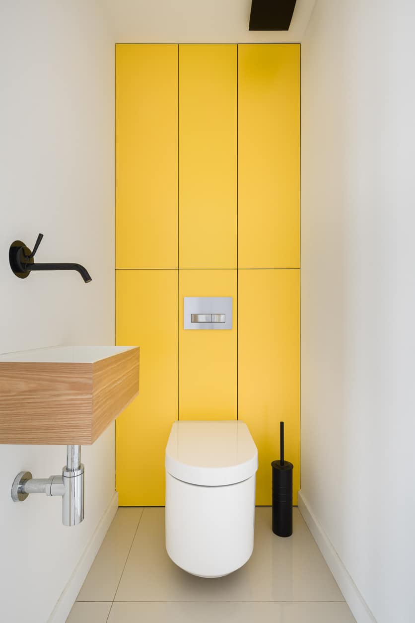 On croit souvent qu’il faut bannir les couleurs vives des toilettes sans fenêtres. Pourtant, elles y trouvent parfaitement leur place.