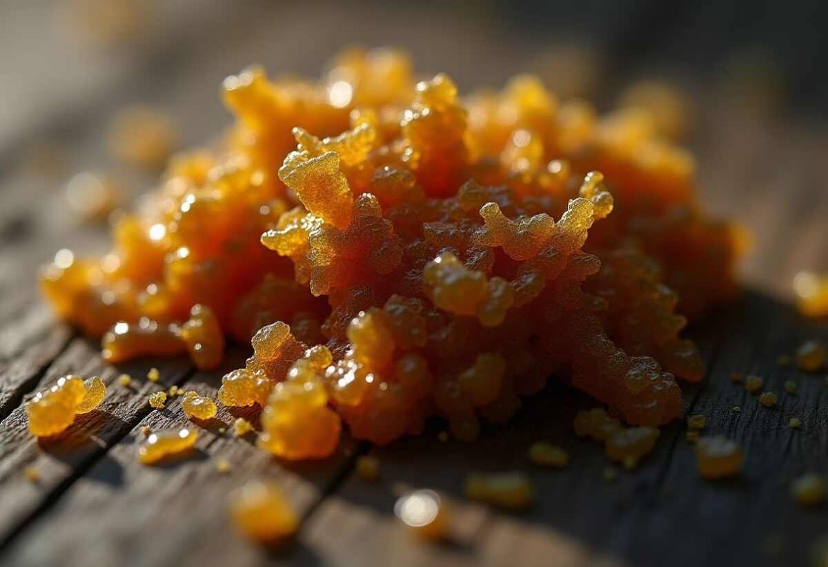 - Texture et apparence : une résine dense, légèrement collante, homogène et sombre est souvent gage de qualité.